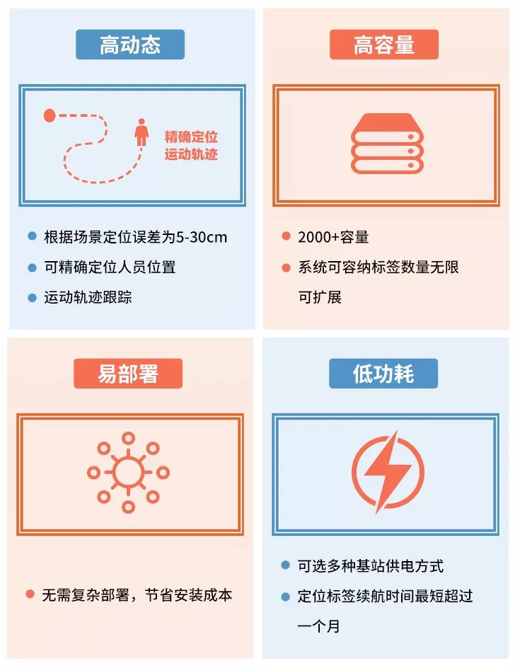 在眾多定位技術中,UWB技術具有傳輸速率高,發(fā)射功率低,傳統(tǒng)能力強等特點,無論是從定位精度、實時性,還是穩(wěn)定性、容量大小等方面,UWB技術都完美的符合工業(yè)安全對定位技術的需求。工業(yè)場景的安全定位服務,主要針對的是人員與設備,相比其他技術,UWB更加適用。